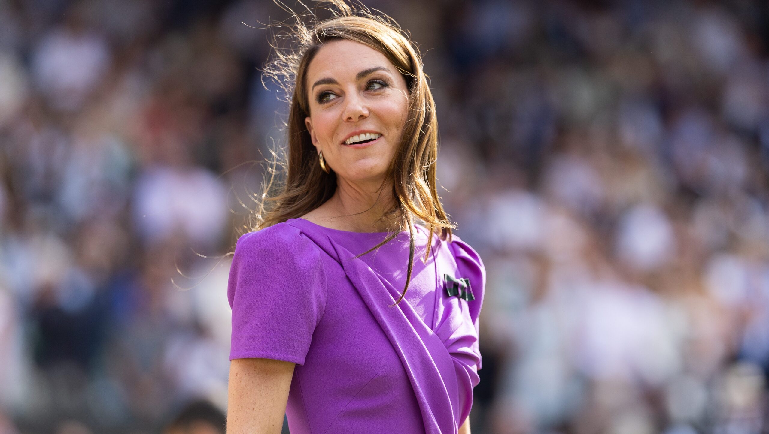 LONDON, ENGLAND - JULY 14: Catherine, Princess of Wales during the trophy ceremony for the Mens Singles Final at The Wimbledon Lawn Tennis Championship at the All England Lawn and Tennis Club at Wimbledon on July 14th, 2024 in London, England. (Photo by Simon Bruty/Anychance/Getty Images)