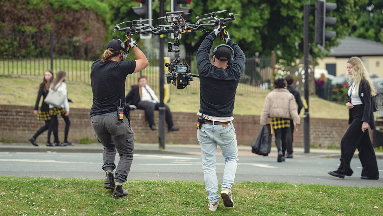 The fight at the school was pretty intense because we had to push through the crowds, and each time, it was a different child that had to move out of the way. My grips were leading me, tapping people on the shoulder to get them to move as I crabbed sideways through the crowd. That was tricky because every time they came out [into the schoolyard], they would all just be in a slightly different [formation], especially when they rushed over for the fight. People just had to be really aware of the camera. Episode two, where the drone happens, that was a real challenge because it was basically too windy almost every day, apart from the last day. … Every moment was a fucking challenge.