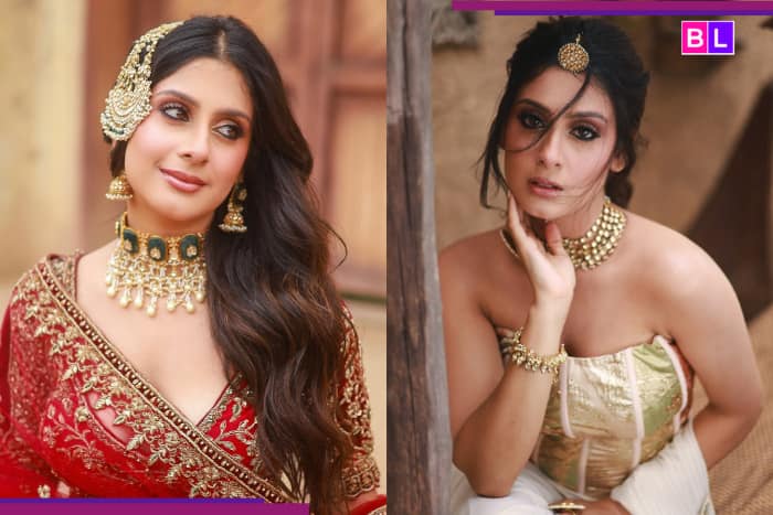 Isha Malviya’s look is graceful and elegant. She wore a flowy pink traditional outfit with golden prints. The deep-neck blouse and tassels on the sleeves add a festive touch. Heavy earrings and a simple hairstyle further enhance her beauty. This look is the perfect combination of trendy and royal.