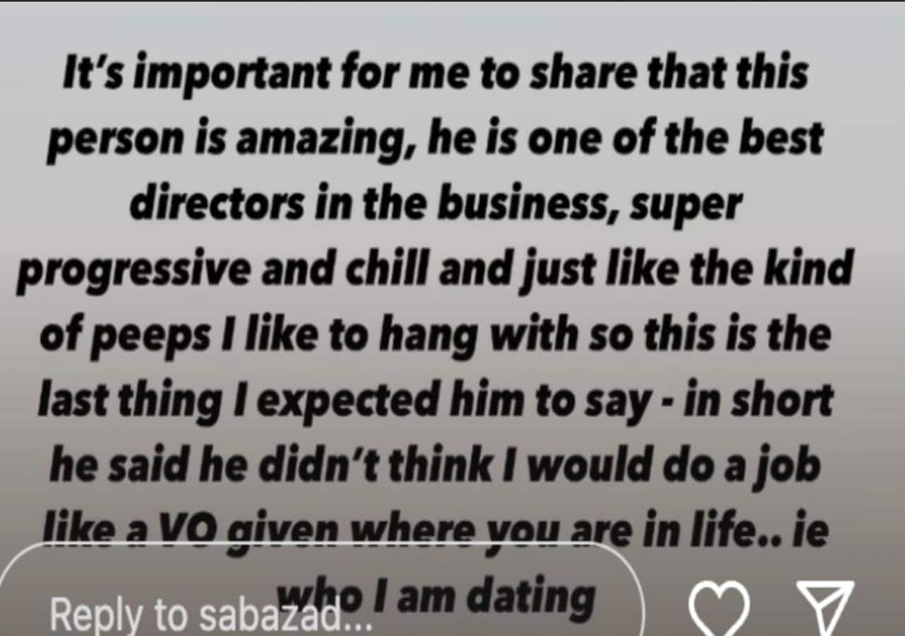 Though, Saba did not mention the name of the director with whom she worked regularly, but said that his reply left her shocked. She said that the director said that she would not want to do voiceovers anymore as she is dating a successful actor.