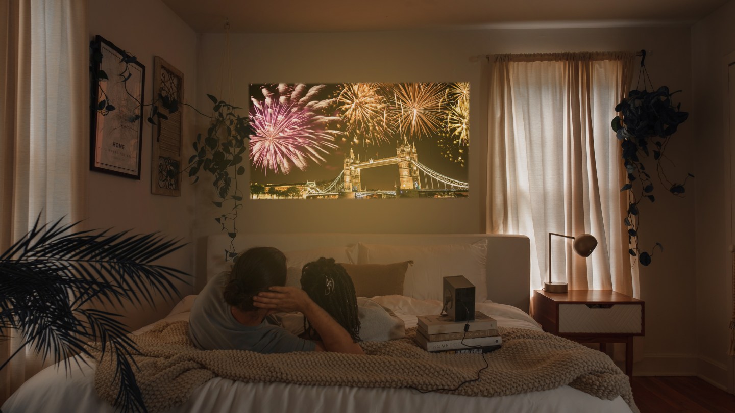 Weighing just a couple of pounds, the ultra-portable projector also packs some serious punch—bringing immersive 4K video, vivid colors at 154% coverage of DCI-P3 color gamut, and rich contrast ratios—as it projects up to a 120-inch image that rivals some of the best displays available today. And with a 360 degree rotating handle that transforms into a kickstand, the sleek set up allows audience members to easily stream festival winners like Poor Things on Hulu which took home “Best Film” at Venice in 2023, or American Fiction, which won the “People’s Choice Award” at last year’s TIFF, from just about anywhere.